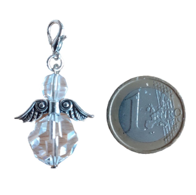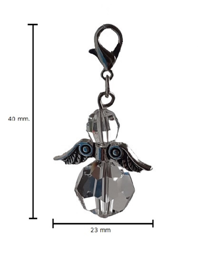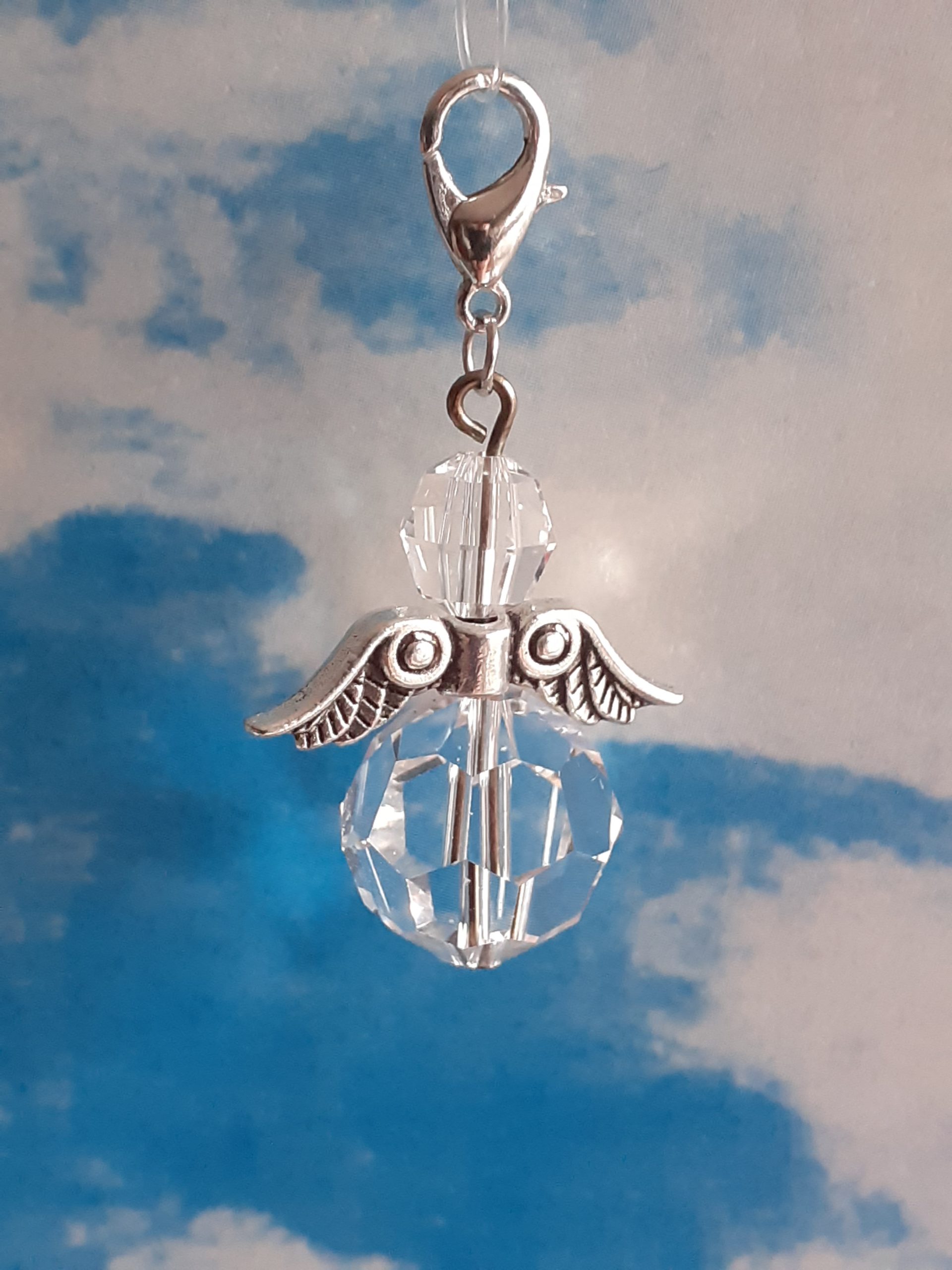 Handvervaardigde ( bescherm ) engel , welke in zijn geheel vervaardigd is met Swarovski kristallen. ( Kralen van 8 en 14 mm.)