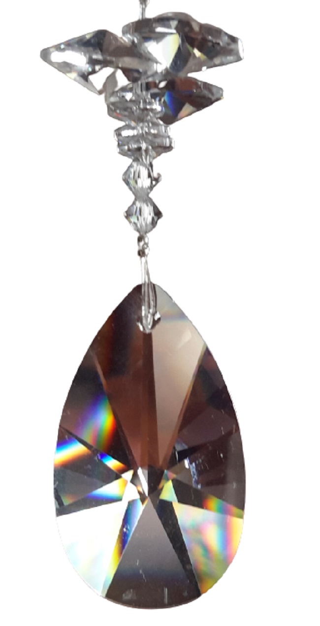 Deze raamhanger ( sun-catcher ) is een Swarovski ziekenhuis kristal in een speelse combinatie met een Tree of Life hanger van half edelstenen.De kristal heeft de heldere , blanke kleur , met een afmeting van 38 x 22 mm ( H x B ) en een loodpercentage van 32%.